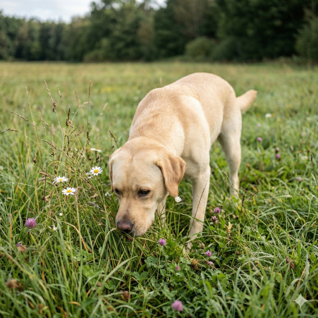 Distanzlosigkeit & „Staubsauger-Syndrom“. Der Hund verliert die Hemmschwelle gegenüber Fremden (Anspringen). Ohne orale Auslastung frisst er gefährliche Fremdkörper, um die mangelnde Arbeit mechanisch zu kompensieren.
