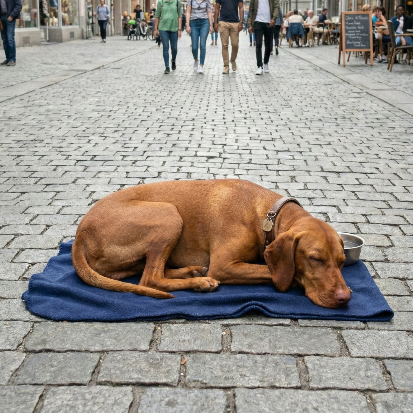 - Der mobile Anker: Wir werfen den Hund nicht direkt ins kalte Wasser. Um das Nervensystem nicht sofort wieder zu überlasten, nehmen wir die etablierte Sicherheit von zu Hause mit nach draussen. Das kann eine bestimmte Decke (ein „mobiles Nest“) sein, auf der der Hund bereits gelernt hat, komplett abzuschalten. Dieser physische Anker signalisiert dem Gehirn auch im Freien: Hier gilt exakt die gleiche Regel und die gleiche Ruhe wie im Wohnzimmer.