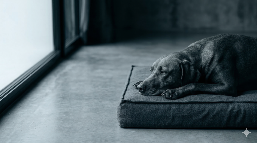 Das ist kein Ausdruck von Liebe, sondern Kontrollverhalten. Dein Hund scannt deine Bewegungen, weil er sich für dich verantwortlich fühlt oder Verlustangst hat. Er kommt nie in den Tiefschlaf, weil sein Nervensystem permanent im „Überwachungsmodus“ ist. Er ist dein Bodyguard, nicht dein Fan. Diese Dauerzuständigkeit führt direkt zu einem erhöhten Cortisolspiegel.